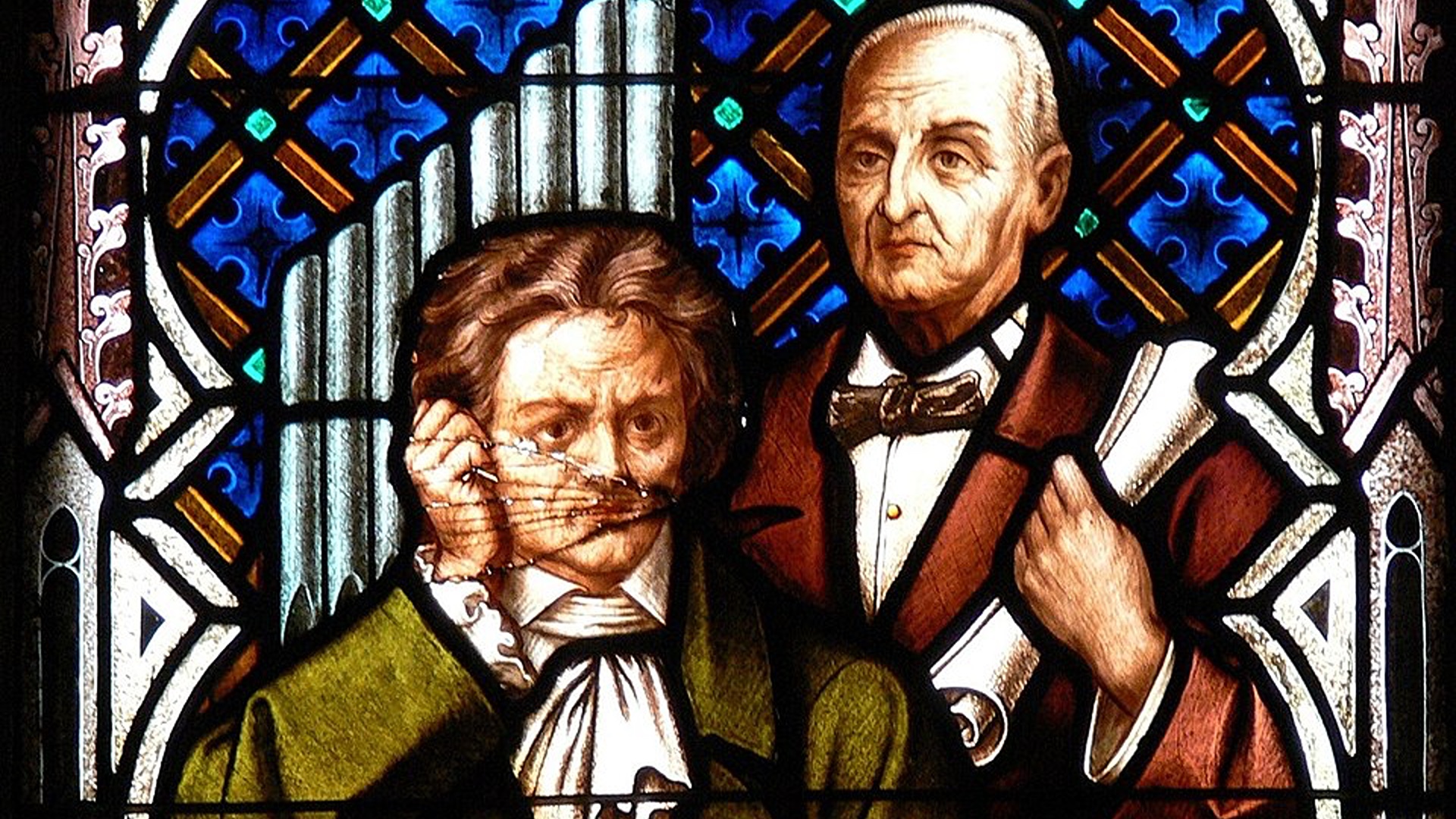 Featured Picture: “Beethoven and Bruckner commemorated on a stained glass window of the Linz Cathedral”