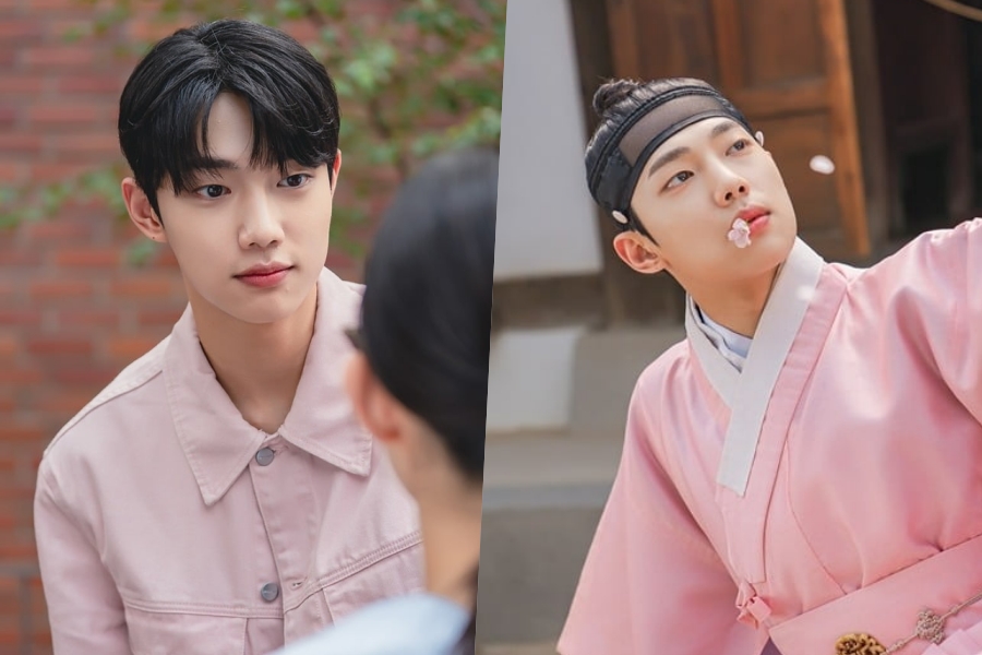 The newly launched stills seize Ki Jung’s contrasting sides: a tender, heart-fluttering gaze as he appears at Woo Yeon, a youthful freshness as he stands alone in a vivid purple college uniform, and a mischievous pose in a hanbok with a fan through the drawing membership idea shoot.