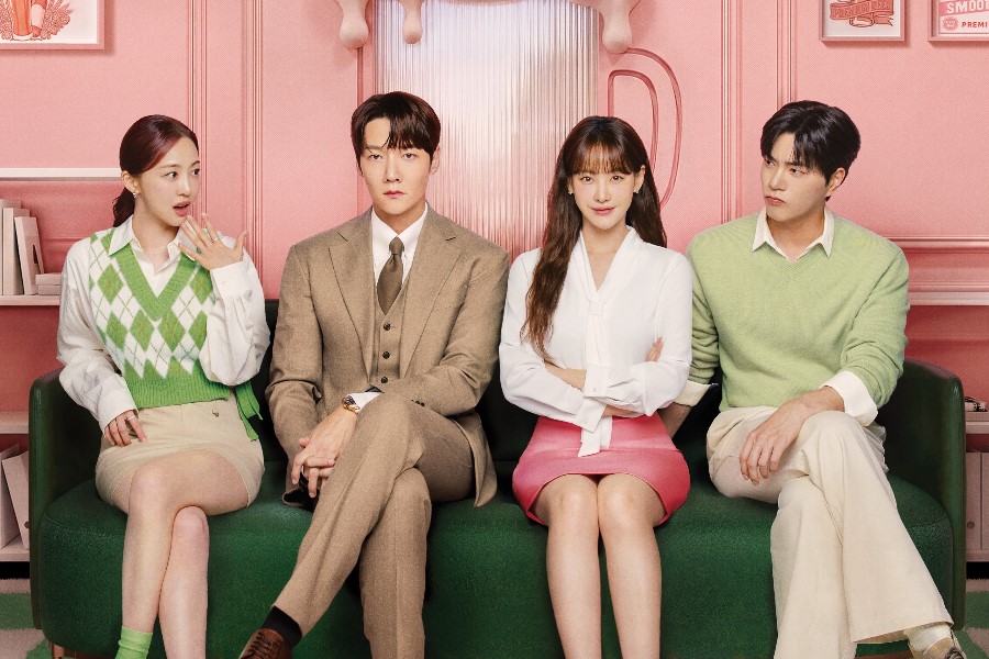 The poster exhibits Min Wook and Mi Ran sitting at each ends, with Doo Joon and Hee Received between them. Doo Joon’s completely tailor-made swimsuit highlights the dandy appeal of Taehan Liquor’s CEO. His pressed lips and tense expression convey the confusion and emotional turmoil he’ll face after a one-night escapade. In the meantime, Hee Received, arms crossed and carrying a delicate smile, hints on the courageous facet of her character.