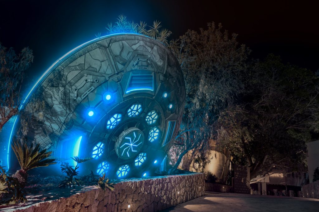 That is clear the second you step onto the sprawling grounds of [UNVRS], because it greets guests with a towering crashed UFO sculpture on the entrance.
