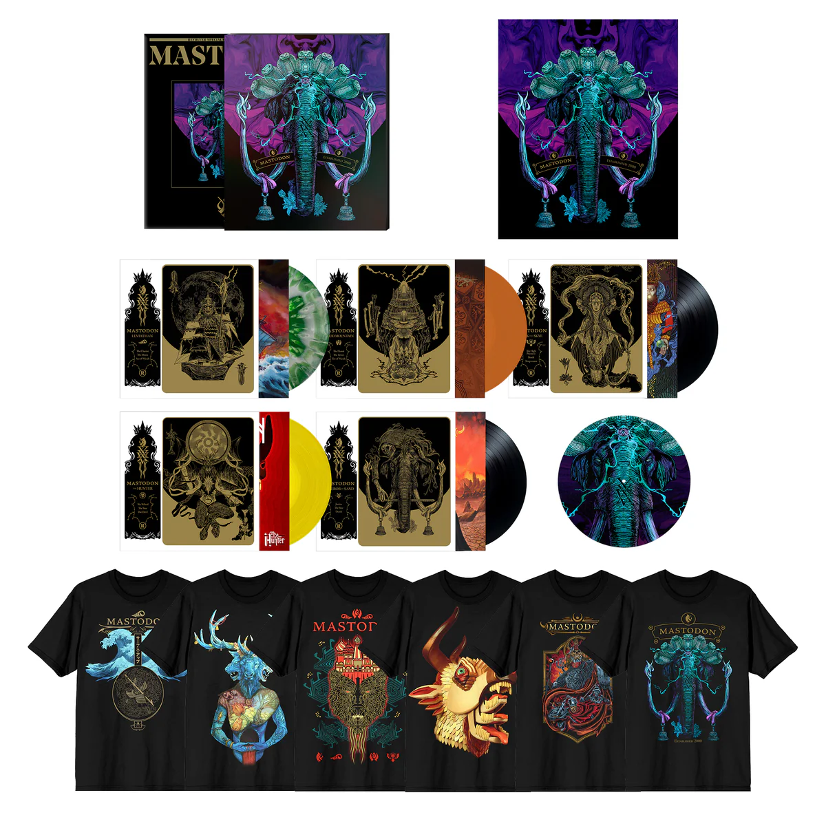 “For the Mastodon die laborious, Revolver has created a brilliant bundle,” Revolver Journal explains within the product description of Mastodon‘s latest, limited edition release, “All the things is proscribed – it contains: all 5 albums (see beneath) with their signed, numbered 12″x12” display screen print inserts by visible artist and longtime Mastodon collaborator Paul Romano‘s unique reimagined artworks, [as well as]: